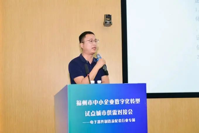 会议聚焦电子器件制造及配套行业的数字化转型,福州市工业和信息化局围绕“试点企业申报、自主选择服务商、改造项目立项、实施数字化改造、评测验收、资金兑现、生态打造”等方面对试点工作进行全流程讲解,为参会企业提供了明确的数字化转型路径。同时,福州市工信局也深入解读了“数字化水平提升改造补助、贷款贴息、优秀试点企业奖励以及技术改造补助”等政策,进一步释放政策红利,鼓励企业加快数字化改造步伐。